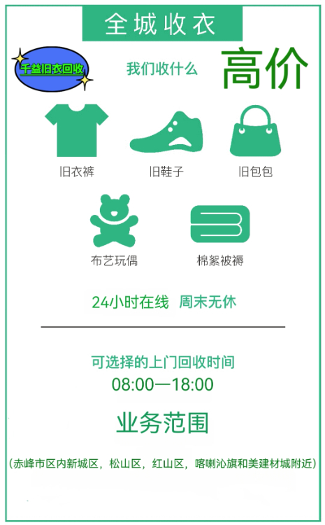 赤峰上门回收旧衣服旧鞋旧包旧床品,免费上门服务,有需要欢迎咨询13789465628